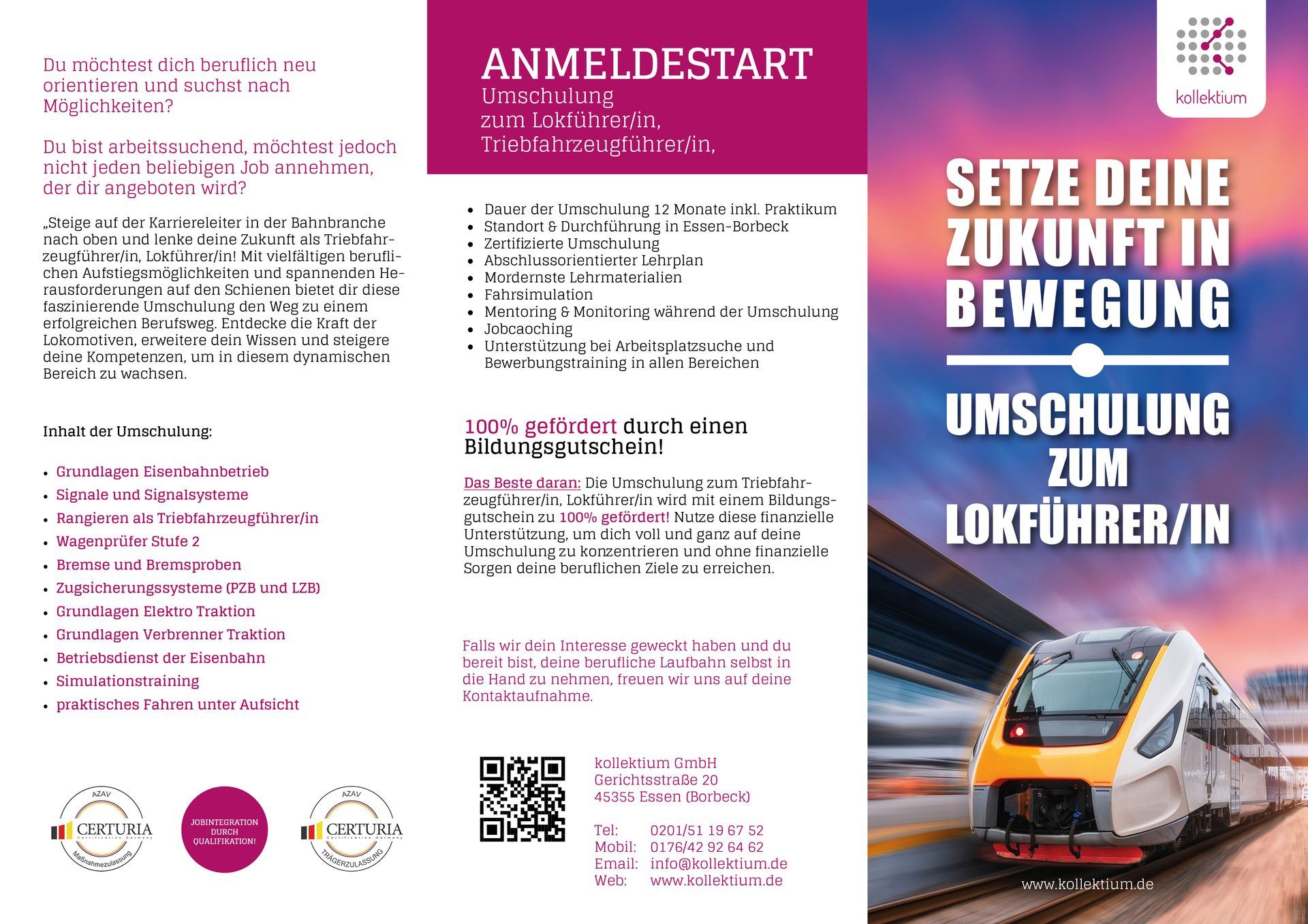 Die Qualifizierung zum Triebfahrzeugführer / Lokführer wird mit einem Bildungsgutschein zu 100% gefördert! Nutze diese finanzielle Unterstützung, um dich voll und ganz auf deine Qualifizierung zu konzentrieren und ohne finanzielle Sorgen deine beruflichen Ziele zu erreichen.